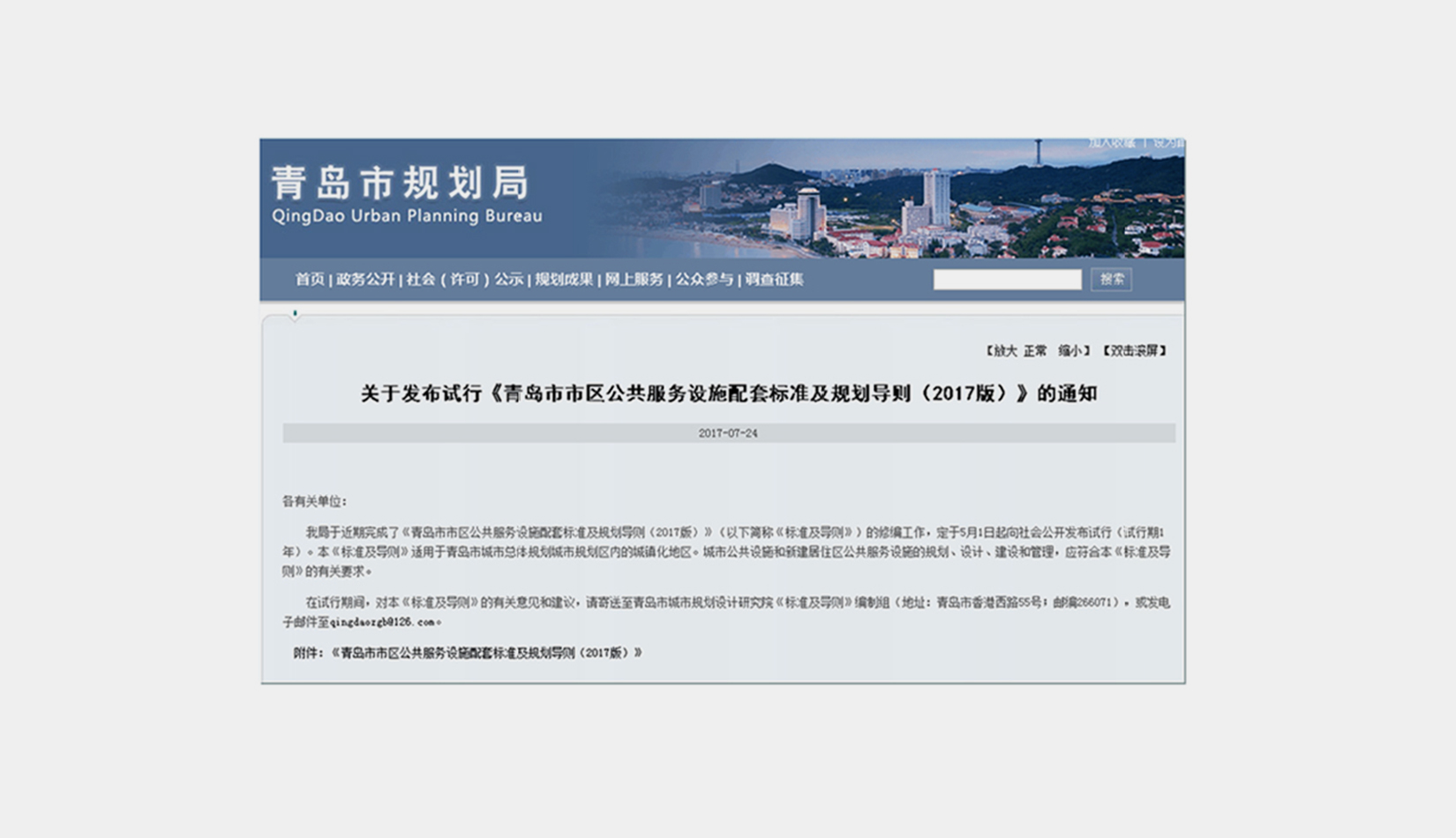 項(xiàng)目名稱:《青島市市區(qū)公共服務(wù)設(shè)施配套標(biāo)準(zhǔn)及規(guī)劃導(dǎo)則》修編